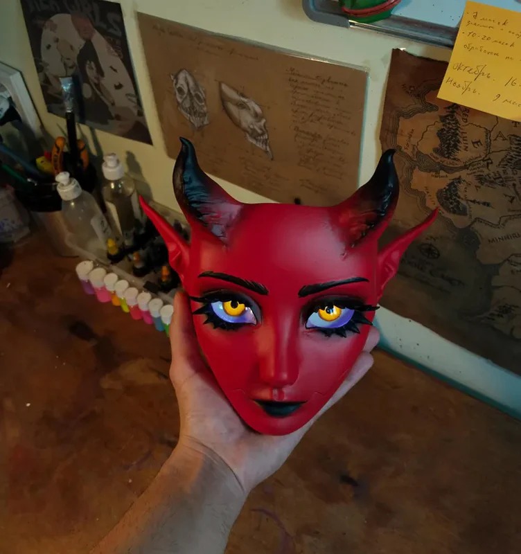This mask can be worn for Halloween and theme parties, allowing one to quickly immerse oneself in a fantasy or dark atmosphere. It can also serve as an artistic creation for display at craft exhibitions or workshops, highlighting the creator's style.